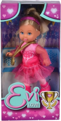 Roztomilá panenka Evi Love v růžovém bruslařském outfitu potěší všechny malé milovnice tance na ledu. Díky růžovým šatům s tutu sukní, ledním bruslím a zlaté medaili inspiruje k tvořivé hře, vyprávění příběhů a rozvíjí dětskou fantazii.