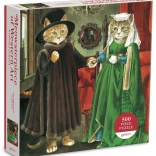 Vstupte do světa umění s úsměvem. Puzzle Meowsterpiece: Arnolfiniho manželství přináší kočičí pojetí slavného obrazu Jana van Eycka v podání Susan Herbert. Díky 500 pečlivě zpracovaným dílkům a čtvercovému formátu vznikne po složení obraz o rozměru cca 51 × 51 cm, který vynikne na stole i na stěně.