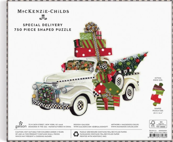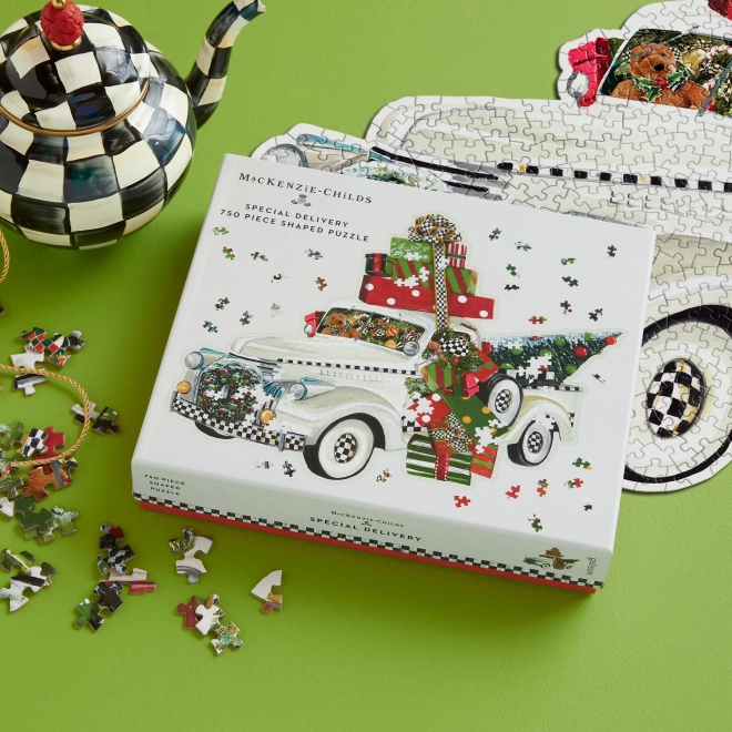 Objevte kouzlo netradičního skládání s tvarovým puzzle „Speciální zásilka“. S 750 pečlivě navrženými dílky vytvoříte jedinečný motiv automobilu naloženého vánočními dárky. Díky speciálnímu tvaru získáte zábavnější a dynamičtější zážitek než u klasických obdélníkových puzzlí, a výsledný obraz se stane krásnou sváteční dekorací.