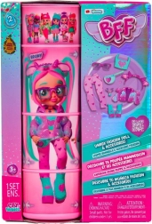 Panenka BFF Bruny přichází v trendy outfitu a s bohatou výbavou pro kreativní styling. Díky dlouhým, zářivým vlasům a plně pohyblivým končetinám je skvělá pro imaginativní hru, focení i vystavování. Doplňky jako kabelka ve tvaru srdce, boty, ponožky a náhrdelník doplní každý look.