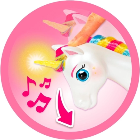 Rym po stisknutí hlavičky rozzáří roh a přehraje až 6 zvuků. Magické efekty podněcují fantazii a dělají ze hry nezapomenutelný zážitek.