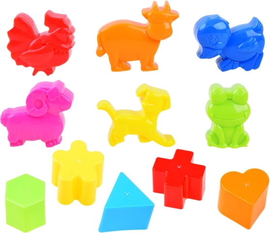 - Interaktivní domeček, 6 kostek zvířátek, 5 kostek tvarů