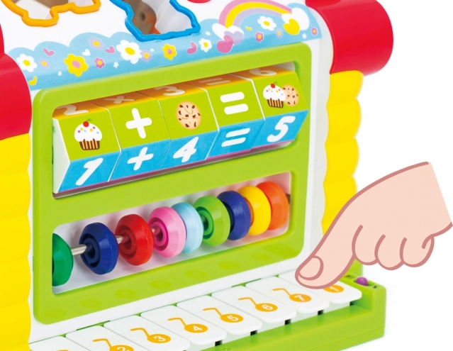 Objevte kouzlo interaktivního domečku, který kombinuje zábavu a vzdělávání. Tento hravý domeček pomůže vašemu dítěti rozvíjet jemnou motoriku a základní matematické dovednosti díky různorodým aktivitám, jako je skládání tvarů a hra na piano.