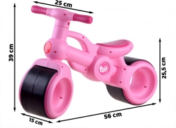 Růžové odrážedlo TCV je ideální první „motorka“ pro nejmenší. Stabilní rám, oblé tvary a široká kola zajišťují bezpečnou jízdu, zatímco lehká konstrukce podporuje samostatnost dítěte. Jízda na odrážedle přirozeně rozvíjí motoriku, jistotu a smysl pro rovnováhu, což později usnadní přechod na klasické kolo bez postranních koleček.
