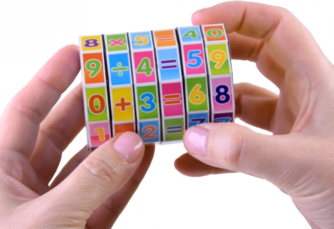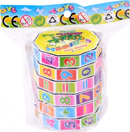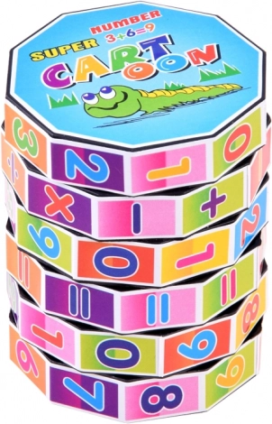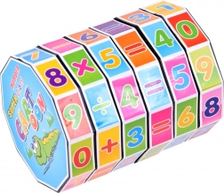 Tento matematický válec je skvělou pomůckou pro děti, které se učí čísla a základní početní operace. Otočné segmenty s čísly a symboly umožňují skládat a kontrolovat jednoduché příklady, díky čemuž si děti snadno a zábavně upevní učivo.