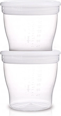 Zásobníky jsou vyrobeny z materiálů určených pro styk s potravinami, vhodné pro dlouhodobé uchovávání čerstvě připravených pokrmů i odsátého mateřského mléka. Víčko lze použít také jako stabilní podstavu. Pomocí adaptéru (součást elektrické i pákové odsávačky EasyStart) lze zásobník našroubovat přímo na odsávačku a mléko tak sbírat bez přelévání.