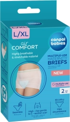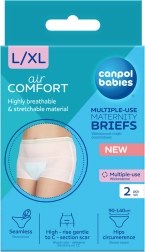 Opakovaně použitelné poporodní kalhotky CANPOL BABIES z jemné síťoviny poskytují prodyšnost, pohodlí a jisté uchycení vložky. Díky vysokému pasu jsou šetrné k jizvě po císařském řezu a jejich elastický, bezešvý střih se dokonale přizpůsobí postavě. V balení jsou 2 kusy ve velikosti L/XL (boky 90–140 cm).
