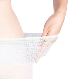 Lehký a měkký síťovaný materiál zajišťuje volné proudění vzduchu, nedráždí pokožku a podporuje komfort v šestinedělí.