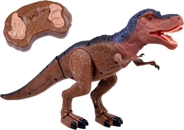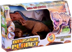 Po stisku tlačítka T‑Rex plynule kráčí a doprovází pohyb dunivými zvuky, které umocňují atmosféru prehistorického lovu.