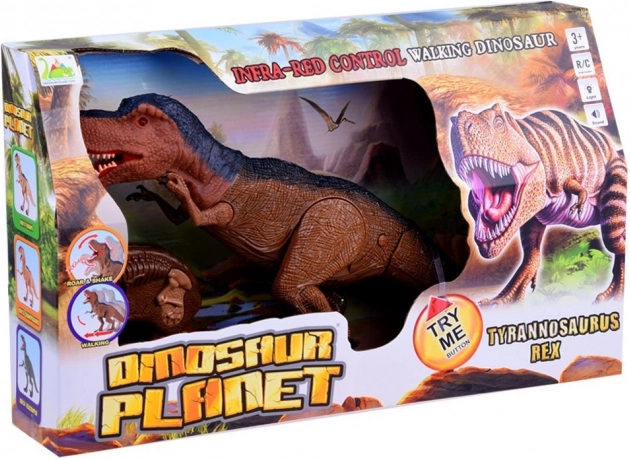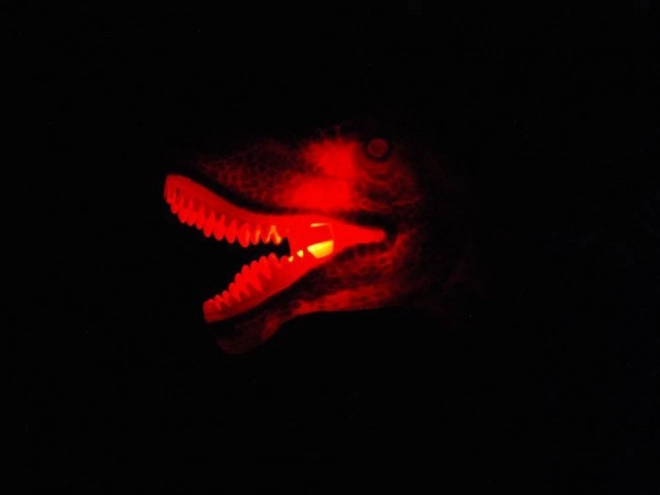 Druhým tlačítkem aktivujete výrazné pohyby hlavy a tlamy s autentickým řevem – akce, která děti vtáhne do hry.