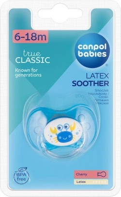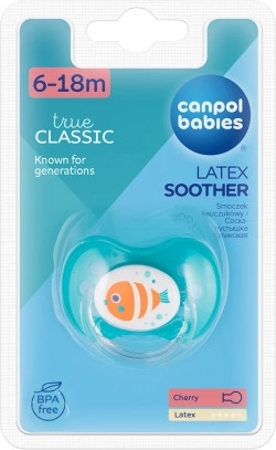 Kaučukový dudlík Canpol babies ve tvaru třešinky je navržen pro přirozené zklidnění dětí od 6 do 18 měsíců. Přírodní kaučuk se vyznačuje jemnou pružností a specifickou, lehce gumovou vůní a barvou, která je pro tento materiál typická. Atraktivní design z kolekce LOVE&SEA s roztomilými mořskými motivy si zamilují děti i rodiče.