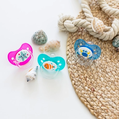 Roztomilé mořské ilustrace dělají z dudlíku oblíbeného parťáka na uklidnění i usínání a lákají děti k přijetí dudlíku.