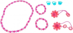 - Bohatý set doplňků: funkční hračka fén na baterie, korálkový náhrdelník, hřeben, 2 gumičky, 3 prstýnky, 2 imitace rtěnek a 3 imitace laků na nehty.