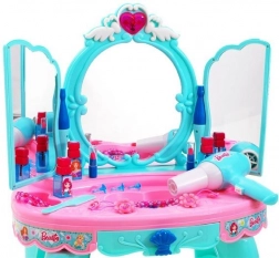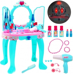 Interaktivní toaletka potěší malé milovnice módy a krásy. Je vyrobena ze solidních a bezpečných materiálů v jemných pastelových odstínech růžové a tyrkysové, díky nimž působí přátelsky a elegantně. Stiskem srdíčka nad zrcadlem se aktivují jemné LED světélka a melodie, které navodí kouzelnou atmosféru.