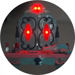 Stiskněte srdíčko nad zrcadlem a užijte si jemné podsvícení i melodii. Dekorativní prvky na dvířkách se rovněž rozzáří a umocní kouzlo hry.