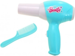 Součástí je dětský fén na baterie, hřeben, šperky a imitace kosmetiky – vše pro realistickou a kreativní hru.