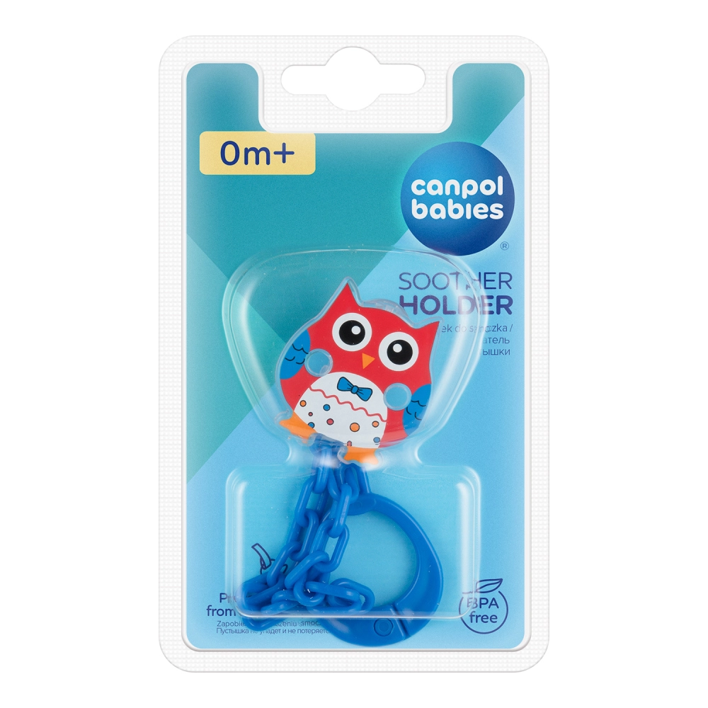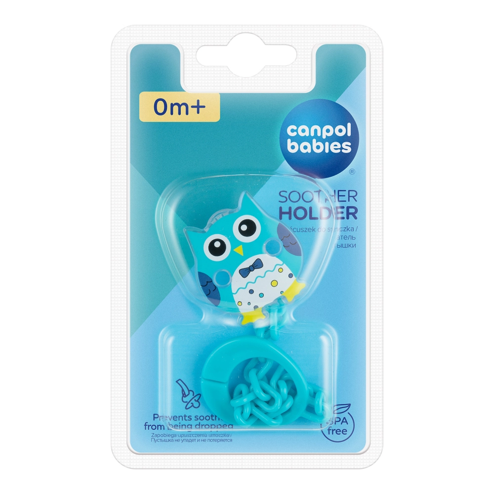 Praktický řetízek na dudlík s roztomilou sovičkou od značky CANPOL babies udrží dudlík vždy po ruce a čistý. Díky pevnému klipu se snadno připevní k oblečení a brání pádu na zem. Je vyroben z odolného plastu, je lehký, barevný a vhodný pro každodenní použití. Bezpečné uchycení, hygiena a snadná údržba v jednom.