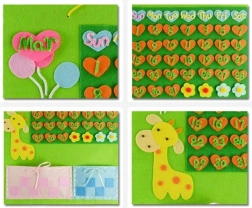- Bezpečné materiály: měkký filc, velká plastová jehla a snadné upevnění dekorací na suchý zip.