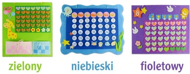 Vytvořte si vlastní nástěnný kalendář z filcu – zábavná a vzdělávací aktivita pro děti. Sada obsahuje vše potřebné pro tvoření a učení se dnům v týdnu, číslicím a organizaci času. Podporuje jemnou motoriku, kreativitu a koordinaci oko–ruka.