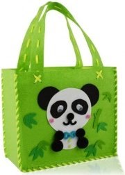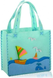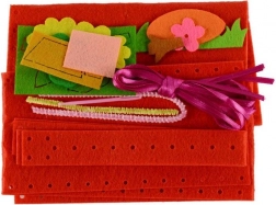 Předřezané filcové díly s otvory a plastová jehla umožní dětem bezpečně a jednoduše kabelku sešít krok za krokem.