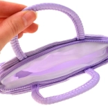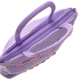 Tato elegantní kabelka je ideální doplněk pro malé módní guru. Je vyrobena z měkkého textilního materiálu s ozdobným potiskem a zapínáním na zip, což zajišťuje bezpečné uložené věci. Kabelka můžete používat jako doplněk k vycházkovému oblečení nebo jako kosmetickou tašku na první kosmetiku, šperky či jiné poklady.