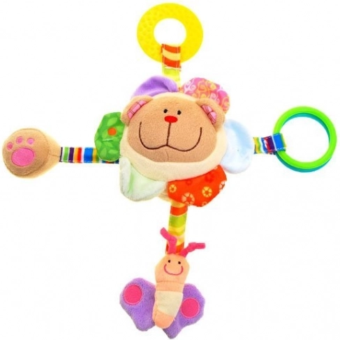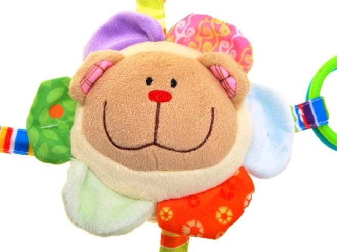 Tato závěska je navržena pro zvědavá miminka. Ve středu se nachází přátelská tvář medvídka obklopená barevnými okvětními lístky, z nichž každý skrývá jiná překvapení. Lístky jsou vyrobeny z různých materiálů: šustících, měkkých, hladkých - což umožňuje dítěti objevovat a rozvíjet smysl pro dotek a sluch.