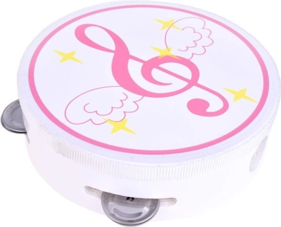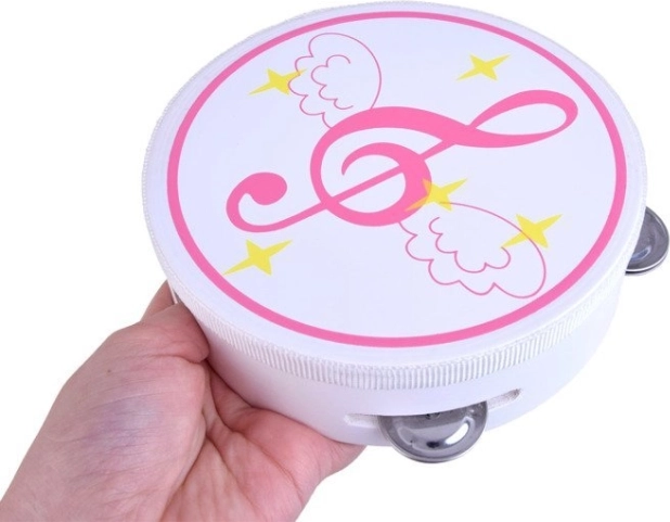 Lehká tamburína s kovovými rolničkami a možností bubnování podporuje rytmické cítění a koordinaci ruky.