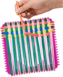 Čtvercový rám drží smyčky pevně na místě, takže se děti mohou soustředit na vzory a barvy. Přiložené nástroje usnadňují proplétání i zakončování okrajů.