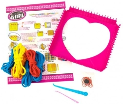 Sada obsahuje rám, barevné smyčky, doplňky i obrázkový návod – stačí otevřít a začít tvořit. Ideální pro začátečníky i malé nadšence ručních prací.