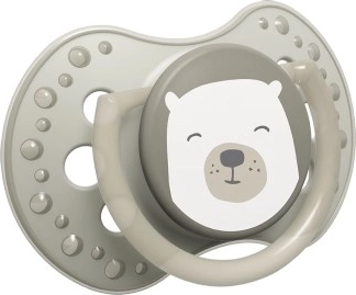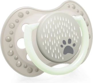 Ergonomický štítek s ventilačními otvory zajišťuje cirkulaci vzduchu a snižuje riziko podráždění. Odolný kroužek usnadňuje podávání i uchycení řetízku, svítící prvek pomůže dudlík ve tmě rychle najít. Všechny části jsou bez BPA a snadno se udržují v čistotě.