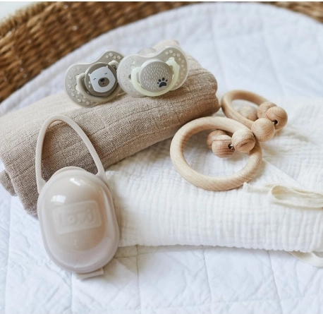 Bezpečnostní úchyt se svítícím prvkem usnadňuje rychlé nalezení dudlíku v noci.
