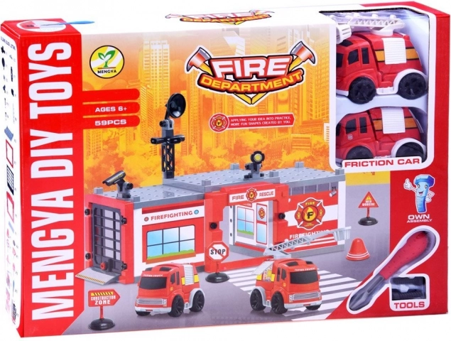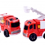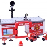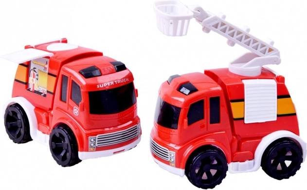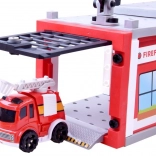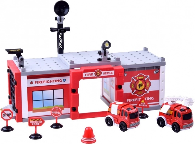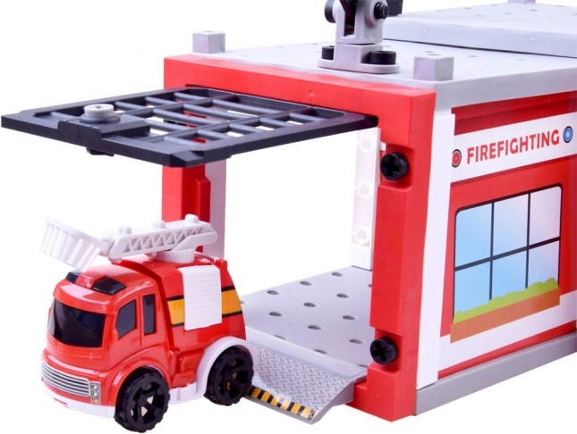 Součástí jsou dvě červená autíčka s detailním zpracováním, jedno s výsuvným žebříkem. Ideální pro záchranné scénáře a jízdu po stanici.