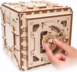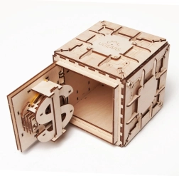 Součástí je kombinační zámek s možností nastavení vlastního kódu (z výroby 3–2–1). Trezor je ideální pro uložení drobností, mincí či karet a zároveň jako stylová dekorace i edukační pomůcka pro pochopení principů mechaniky. Doporučeno pro stavitele od 14 let.