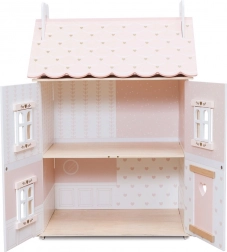 Jemné pastelové provedení, detailní okna s okenicemi a roztomilé dveře vytvářejí útulný domov pro panenky a nekonečné příběhy.