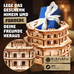 Součástí je tajná přihrádka (6 × 3,7 × 3,7 cm), do které můžete ukrýt nápovědu, vzkaz či malý dárek – skvělé pro originální překvapení. V balení najdete obrázkový návod a QR kód s nápovědou, abyste se nezasekli na dlouho. Díky odolnému provedení lze hlavolam po dohrání sdílet s přáteli i rodinou.
