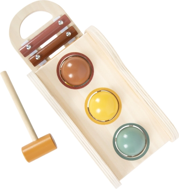 Tato dřevěná hračka spojuje multifunkční hraní s krásným designem. Tři barevné koule děti kladívkem proklepnou skrz otvor a při kutálení spustí tóny integrovaného xylofonu. Hudební část lze snadno vyjmout a používat samostatně – ideální pro první hudební krůčky.