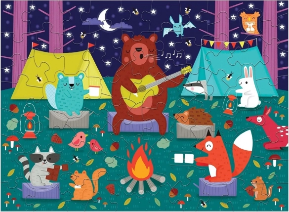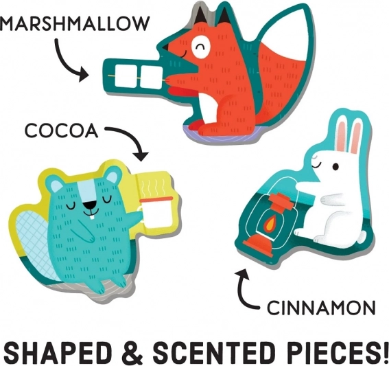 Ponořte se do světa lesních kamarádů u táboráku. Toto voňavé puzzle přináší nejen radost ze skládání, ale i zábavný smyslový prvek – tři speciální dílky voní po marshmallow, kakau a skořici. Díky sytým barvám, matné povrchové úpravě a hladké zadní straně se dílky příjemně drží a skvěle do sebe zapadají.