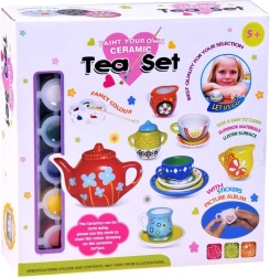 Vymalujte si vlastní keramickou čajovou sadu! Tato kreativní sada pro malé umělce obsahuje 3 šálky, 3 podšálky a konvičku i všechny pomůcky – barvy, štětec, paletku a samolepky. Skvělá kreativní zábava pro děti od 5 let a parádní výbava pro čajové dýchánky s panenkami a plyšáky.