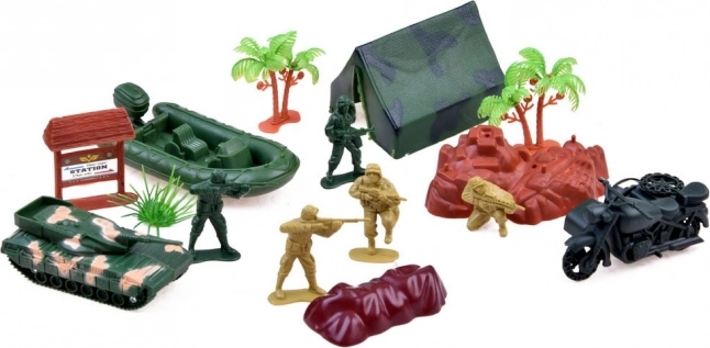 Tato velká sada vojenských hraček nabízí vše, co děti potřebují k vytvoření vlastních bitevních scénářů a strategických her. Zahrnuje celou škálu vozidel, jako jsou tanky, helikoptéry a vojenské vozíky, stejně jako důležité vybavení a figurky odvážných vojáků. Sada podporuje rozvoj strategického myšlení a kreativity.