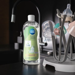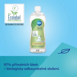Šetrný, ale vysoce účinný prostředek pro každodenní mytí dětských lahví a saviček. Složení z 97 % přírodních ingrediencí si poradí se zbytky mléka, kaší i džusů, bez parfémů a barviv, s neutrálním pH a dermatologicky testovanou recepturou. Biologicky odbouratelný a certifikovaný EU Ecolabel pro šetrnost k pokožce i přírodě.