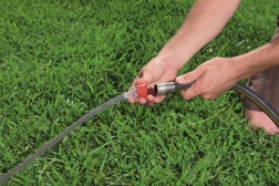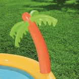 Vestavěný rozprašovač uprostřed bazénku vytvoří spršku vody – stačí připojit běžnou zahradní hadici a zábava může začít.