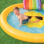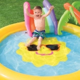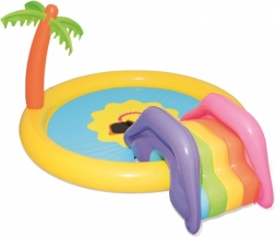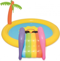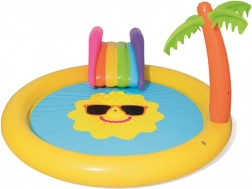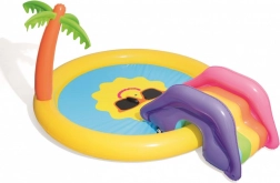 Proměňte zahradu v mini vodní park! Dětské vodní hřiště BESTWAY s motivem usměvavého sluníčka láká k dovádění a osvěžení v horkých dnech. Stačí připojit zahradní hadici a vestavěný rozprašovač vytvoří osvěžující fontánku. Vyjímatelná skluzavka s barevným provedením potěší malé dobrodruhy, zatímco měkký a pevný vinyl zajistí pohodlné a bezpečné hraní.