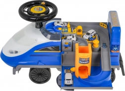 Interaktivní jezdící vláček s policejním parkovištěm je ideální pro děti od 3 let. Tento inovativní jezdící produkt je vyroben z vysoce kvalitního a netoxického plastu, který zajišťuje dlouhou životnost a bezpečnost pro děti. Vláček je vybaven šesti koly, z nichž dvě přední jsou otočná, a pod sedadlem se skrývá skládací policejní parkoviště s mnoha pohyblivými prvky, včetně skluzavek, výtahu a zábran, které můžete nastavit podle vašich představ.
