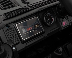 Vnitřní výbava zahrnuje luxusní sedadla z ekokůže a multifunkční audio panel s FM rádiem, Bluetooth a možností přehrávání z SD karet a USB. Děti si navíc mohou vychutnat vestavěné melodie a zvukové efekty při řízení.
