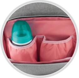 Integrovaná termo kapsa pomáhá udržet teplotu nápoje, boční kapsa je ideální pro láhev či hrníček a rychlý přístup k ubrouskům.