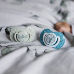Sada obsahuje 2 dudlíky v přírodních motivech a plastové pouzdro pro hygienické uchovávání doma i na cestách.