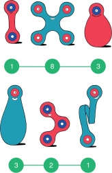 Unikátní tvar a flexibilní konstrukce umožňují ohýbat, kroužit a spojovat dílky do plochých i prostorových modelů – od jednoduchých zvířátek po fantazijní stroje.
