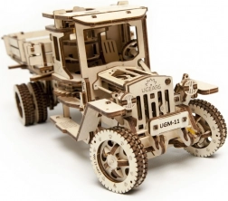 UGM-11 je vybaven převodovkou s volnoběhem a zpátečkou, ovládáním rychlosti (plynový pedál) a ruční brzdou. Odpružená přední náprava zajišťuje plynulý pohyb, zatímco sklopné bočnice korby jsou připravené třeba pro vaše vizitky. Model je navržen a vyroben na Ukrajině a potěší jak při stavbě, tak při provozu.