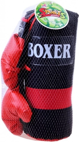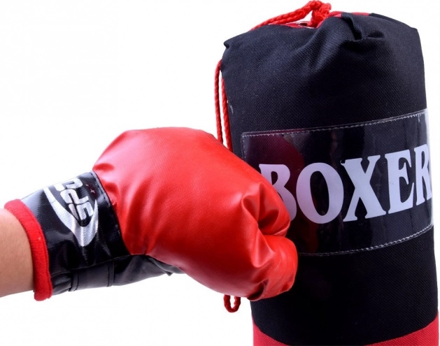 Kompletní boxerská sada pro domácí trénink i zábavu. Obsahuje 2 boxerské rukavice a závěsný boxovací pytel. Rukavice ze syntetické kůže se zapínáním na suchý zip zajišťují pohodlné a bezpečné upevnění. Pytel je pevně prošitý, zavěšený na kovových očkách se šňůrami. Ideální pro rozvoj koordinace, rychlosti a obratnosti.