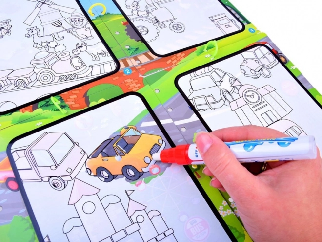 Magická kniha vodního malování umožňuje dětem tvořit bez nepořádku. Vodní pero umožňuje objevit skryté barvy a obrázky.
